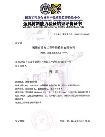 | 2015金屬材料能力驗證結(jié)果評價證書在寧頒發(fā) | ||