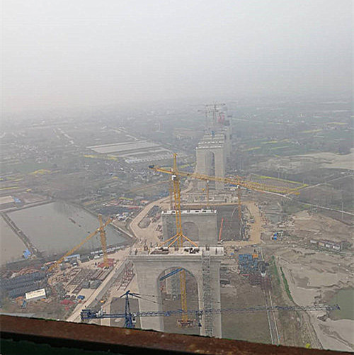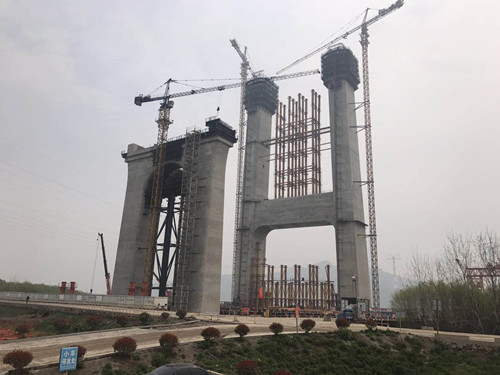 五峰山長江特大橋位于江蘇泰州長江大橋和潤揚長江大橋之間,是繼1968年建成的南京長江大橋和正在建設的滬通長江大橋之后的長江江蘇段第三座公鐵兩用大橋,是連接連淮揚鎮(zhèn)鐵路和京滬高速公路南延的關鍵節(jié)點工程。其全長6400多米,其中主跨為1092米,采用單跨懸吊鋼桁梁懸索結構,上層為8車道高速公路,設計速度每小時100公里;下層為4線高速鐵路通道,設計速度每小時250公里。 五峰山公鐵兩用長江大橋建成后,將是中國第一座鐵路懸索橋,也是世界荷載和設計時速第一的鐵路懸索橋。該工程中,研發(fā)和應用了大量的新技術、新工藝。 3月24日,無錫市建筑施工學術委員赴丹徒五峰山長江大橋項目現(xiàn)場,在參與施工的江陰一建技術人員的陪同下,登上北岸主橋墩滑模平臺現(xiàn)場參觀。