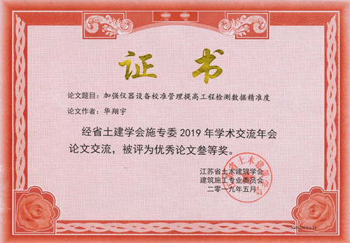 5月15日至5月17日,江蘇省土木建筑學(xué)會(huì)建筑施工專業(yè)委員會(huì)第九屆六次會(huì)議暨2019年學(xué)術(shù)交流會(huì)在鎮(zhèn)江句容市召開。 會(huì)議總結(jié)交流了各市學(xué)會(huì)工作經(jīng)驗(yàn),研究布置了2019年省學(xué)會(huì)施專委工作。會(huì)上組織了學(xué)術(shù)交流,論文主題為綠色環(huán)保及節(jié)能施工新技術(shù)、建筑裝飾裝修施工學(xué)技術(shù)、現(xiàn)代施工管理及施工質(zhì)量安全監(jiān)控等。 今年的論文評(píng)審,更注重質(zhì)量,不求數(shù)量。全省各市推薦500篇論文參會(huì)交流,經(jīng)評(píng)審,有300篇論文評(píng)選為省優(yōu)秀施工學(xué)術(shù)論文。無錫市前友工程咨詢檢測(cè)有限公司“加強(qiáng)儀器設(shè)備校準(zhǔn)管理提高工程檢測(cè)數(shù)據(jù)精準(zhǔn)度”論文參會(huì)交流并獲獎(jiǎng)。