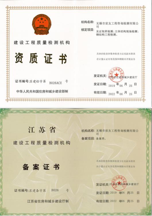 近日,無錫市前友工程咨詢檢測有限公司從江蘇省政務(wù)服務(wù)中心住房城鄉(xiāng)建設(shè)分中心領(lǐng)回了嶄新的《建設(shè)工程質(zhì)量檢測機(jī)構(gòu)資質(zhì)證書》。據(jù)此,公司資質(zhì)延續(xù)工作已率先順利完成。 十多年來,公司經(jīng)過多輪增項(xiàng)擴(kuò)項(xiàng),檢測能力不斷提高,已覆蓋建設(shè)工程見證取樣類、專項(xiàng)檢測類、備案檢測類、測繪類、安全檢測類和其他類。同時(shí),已入圍江蘇省裝配式建筑檢測機(jī)構(gòu)名錄和無錫市房屋安全鑒定檢測機(jī)構(gòu)名錄。 檢測資質(zhì)的順利延續(xù),為公司品質(zhì)發(fā)展奠定了堅(jiān)實(shí)的基礎(chǔ)。公司將虔誠為政府、客戶和社會提供更優(yōu)質(zhì)、更全面的咨詢檢測服務(wù)。