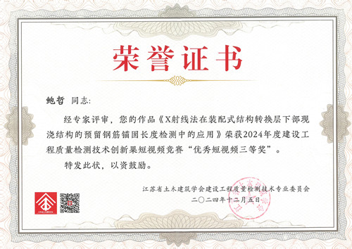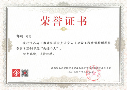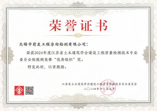 12月5日,第六屆全省建設(shè)工程質(zhì)量檢測(cè)技術(shù)研討會(huì)暨江蘇省土木建筑學(xué)會(huì)建設(shè)工程質(zhì)量檢測(cè)技術(shù)專(zhuān)業(yè)委員會(huì)2024年年會(huì)在南京召開(kāi)。省、市建設(shè)行業(yè)行政主管部門(mén)領(lǐng)導(dǎo)、省土木建筑學(xué)會(huì)領(lǐng)導(dǎo)、專(zhuān)委會(huì)委員及會(huì)員代表近200人參加會(huì)議。 會(huì)議主題:守正創(chuàng)新,智慧未來(lái)。主要內(nèi)容:江蘇省土木建筑學(xué)會(huì)建設(shè)工程質(zhì)量檢測(cè)技術(shù)專(zhuān)業(yè)委員會(huì)2024年度工作總結(jié);江蘇省土木建筑學(xué)會(huì)先進(jìn)集體(建設(shè)工程質(zhì)量檢測(cè)科技創(chuàng)新)、先進(jìn)個(gè)人(建設(shè)工程質(zhì)量檢測(cè)科技創(chuàng)新)表彰;優(yōu)秀論文表彰;創(chuàng)新成果短視頻表彰;專(zhuān)家學(xué)術(shù)報(bào)告及檢測(cè)機(jī)構(gòu)經(jīng)驗(yàn)交流等。 無(wú)錫市前友工程咨詢檢測(cè)有限公司獲江蘇省土木建筑學(xué)會(huì)(建設(shè)工程質(zhì)量檢測(cè)科技創(chuàng)新)先進(jìn)集體和短視頻競(jìng)賽“優(yōu)秀組織獎(jiǎng)”。鄒明研究員級(jí)高工獲(建設(shè)工程質(zhì)量檢測(cè)科技創(chuàng)新)先進(jìn)個(gè)人,鮑哲高工獲2024年度建設(shè)工程質(zhì)量檢測(cè)技術(shù)創(chuàng)新成果短視頻競(jìng)賽“優(yōu)秀短視頻三等獎(jiǎng)”。
