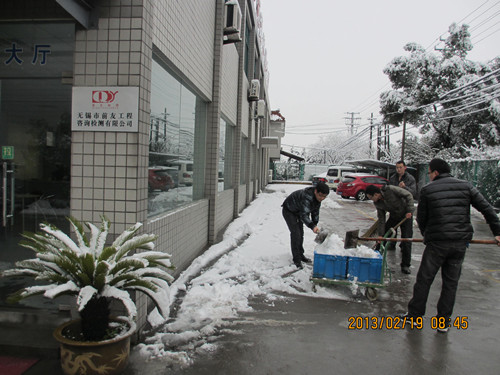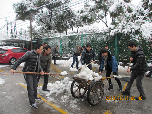 正月初十,年味漸遠。正當我們收拾好心情,投入新年工作的時候,一場大雪與我們不期而遇。厚厚的白雪覆蓋了無錫的大街小巷,看公司銀裝素裹,十分欣喜。 清早,為了方便日常通行,前友的員工們自發(fā)的尋找工具,進行掃雪。由于條件的限制,配備的掃雪工具只有鐵锨和掃帚,加上低溫天氣,使除雪工作更加艱難,員工們的手和臉都凍得通紅,然而,這一切絲毫沒有影響大家掃雪的熱情和工作效率。隨后,在檢測室孟主任、綜合辦陳主任的帶領下,大家發(fā)揚了吃苦耐勞、頑強拼搏的戰(zhàn)斗精神,團結協(xié)作,頂著寒風,將公司場地積雪清掃干凈。柳絮般的小雪融合著前友人的團結與激情,此情此景不禁讓人感嘆,前友人就是這樣一個有凝聚力、正能量的團體! 新春上班第一天有趣的掃雪活動,展示出了前友人的精神面貌,堅信蛇年會有個好兆頭!