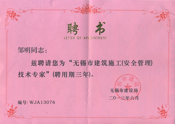 | 市建設(shè)局聘任無錫市建筑施工技術(shù)專家 | ||