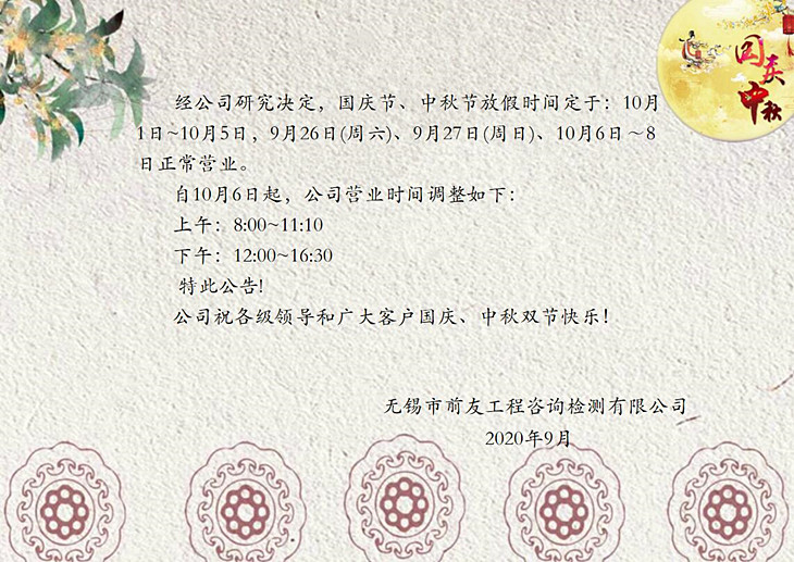| 關(guān)于國慶、中秋放假及節(jié)后營業(yè)時間調(diào)整的公告 | ||
